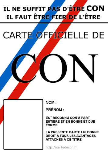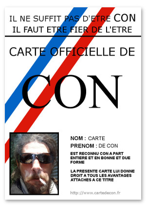 Etre con n'est pas donné à tout le monde. Un con digne de ce nom mérite une carte officielle permettant de faire valoir les droits attachés à ce titre.